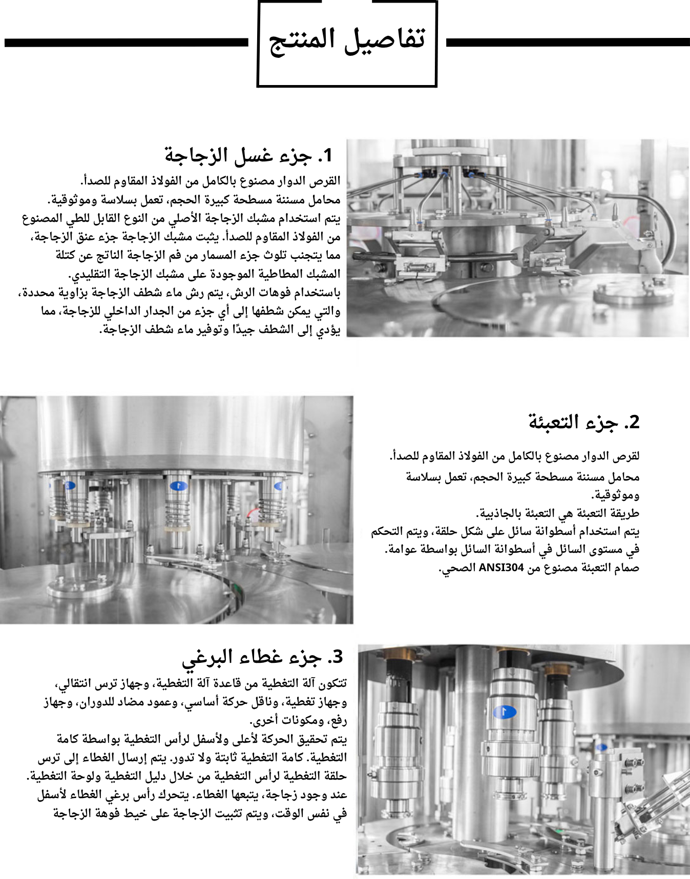 ج3: يمكننا تصميم الجهاز وفقا لمتطلباتك ، المواد ، الطاقة ، نوع التعبئة. أنواع الزجاجات وما إلى ذلك ، في نفس الوقت ، سنقدم لك اقتراحاتنا المهنية ، كما تعلمون ، لقد كنا في هذه الصناعة لسنوات عديدة.